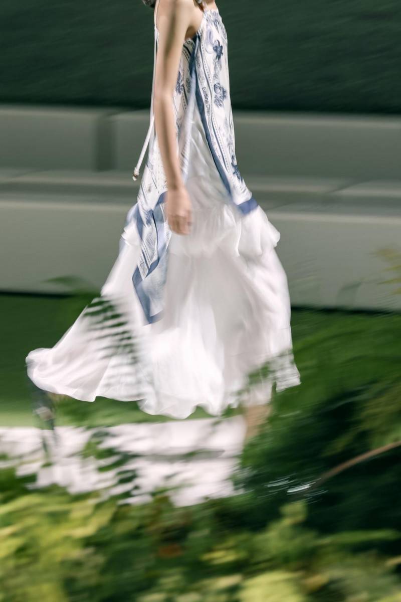 黑与白,是江南水墨的写意留白,简约且富有张力,是跨越时空的经典配色。本系列以黑白为基底诠释江南极简美学,在古典水墨意境与摩登时尚表达间找到交融点,让身着者于夏日光影中寻觅内心宁静。轻盈薄纱在肩头温柔舒展,柔化黑白的冷冽感,细腻勾勒女性柔美曲线,简约剪裁凸显线条之美,无需过多装饰便自带静谧非凡的气质。从精致晚宴到日常搭配,黑白系列打破场景边界,以率性利落的设计,让当代女性在不同场合皆能彰显独立自信的摩登魅力,演绎无界的夏日时尚。